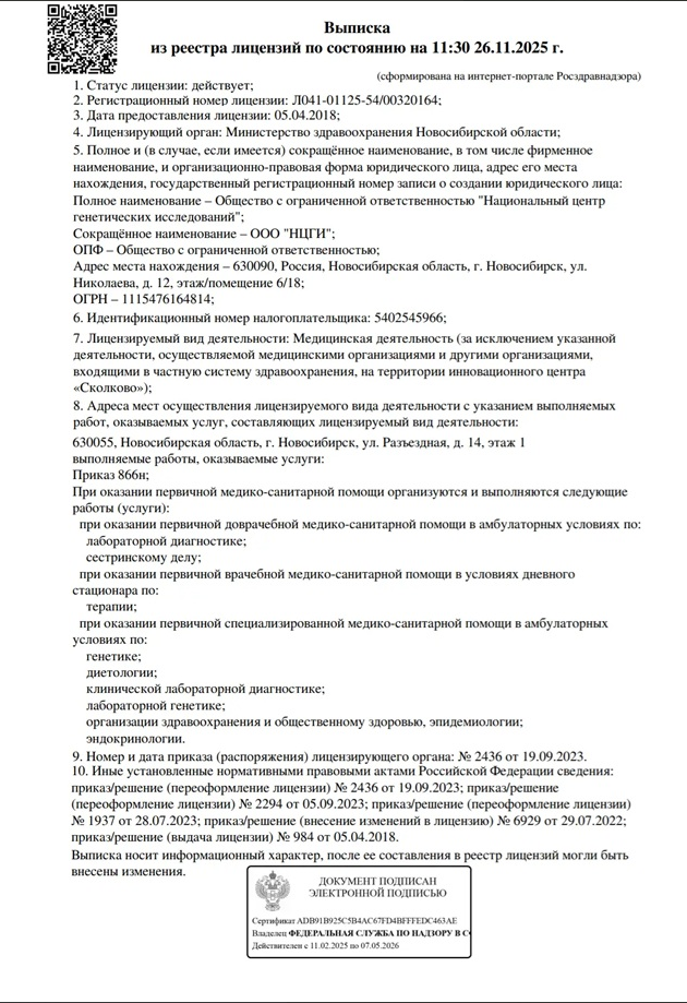 Лаборатория имеет полную аккредитацию и сертификацию. Наши заключения являются полными и развернутыми. Генетическая экспертиза ДНК становится основным доказательством в судебных спорах и принимаются всеми судами и государственными учреждениями Российской Федерации.